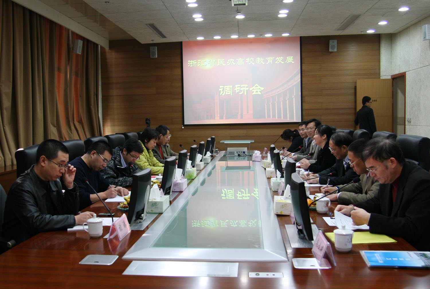 会上,校党委书记孙惠敏首先向调研组一行表示热烈欢迎。接着,李津石副处长说明了此次调研的目的和主要内容。省教育厅高教处副处长金仁康详细介绍了我省民办学校尤其是民办高校的发展情况,他说,浙江民办教育发展迅速、规范有序,已成为浙江教育重要组成部分,目前浙江省已拥有8780余所民办学校,其中高校12所。他还重点谈及了民办高校发展面临的问题,诸如管理体制、法人属性、举办者合理回报、资金、监督与管理等。