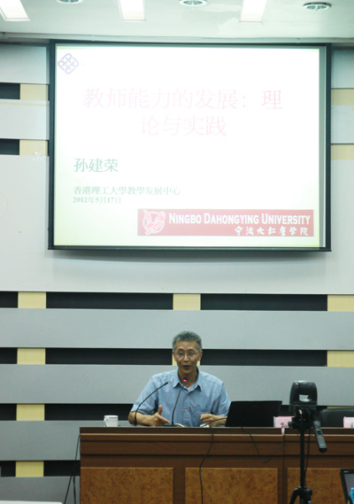 5月17日晚,香港理工大学孙建荣教授应邀莅临我校,并在图书馆二楼报告厅作了“教师能力的发展:理论与实践”的专题报告。我校领导、中层干部、专业带头人、教研室主任和有关职能部门人员等聆听了报告,报告会由校长助理高振强主持。