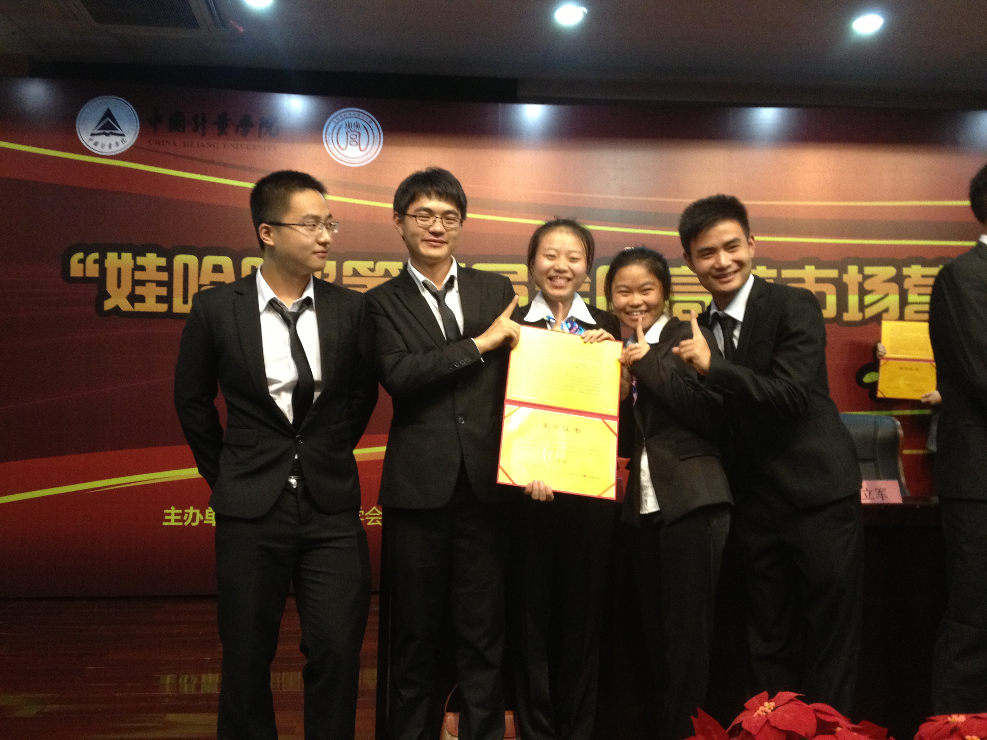 10月12日—14日,“娃哈哈”第五届全国高校市场营销大赛浙江赛区决赛在中国计量学院举行。我校参赛的四支团队通过产品销售、营销方案策划、现场答辩、沙盘模拟等四个环节比拼,在参赛的各队中脱颖而出,取得了2项一等奖、2项二等奖的优异成绩。其中,由王涛、方凯、刘永乐、徐震洲、管庆丰等同学组成的鹰雁团队(指导老师:裘益明、唐雪莲),和由徐丹荔、吕江南、王辉、林佳斌、潘志富等同学组成的锐鹰团队(指导老师:包小云、王波)分别获得一等奖;由史利杰、项文俊、金一川等同学组成的鹰姿团队(指导老师:刘静、魏幼芳),和由李甬波、吴雨倩、黄志伟、赵晖等同学组成的掘金团队(指导老师:徐慧、陈东华)分别获得二等奖。