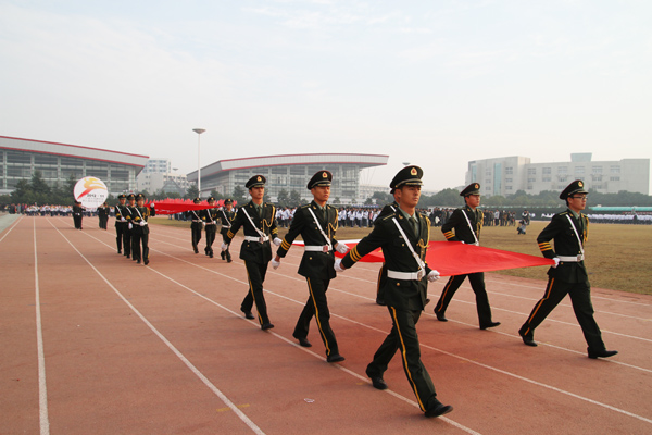 随着李羽副校长宣布运动会入场式开始,在国旗和本届运动会会徽的导引下,校仪仗队、各分院代表队成员迈着自信有力的步伐,精神抖擞地走过主席台。运动员们响亮的口号和形式多样的表演,充分展示了我校学子蓬勃的朝气和良好的精神风貌。