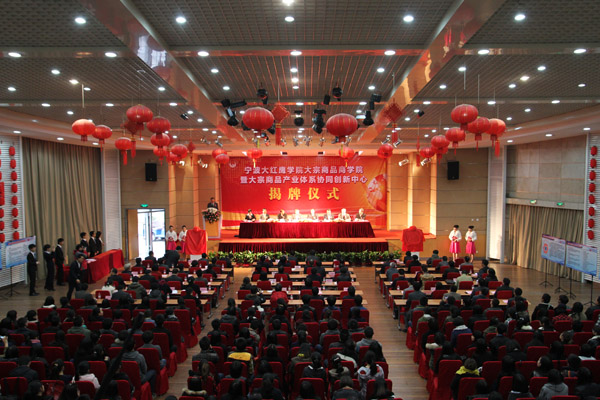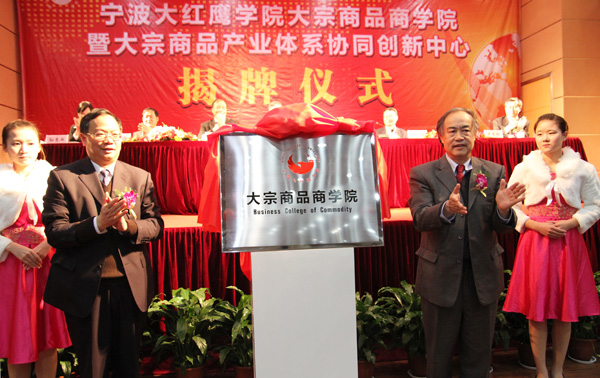 11月29日下午,我校大宗商品商学院暨大宗商品产业体系协同创新中心揭牌仪式在信息大楼报告厅隆重举行,宁波市委书记王辉忠发来贺信,宁波市政府副市长张明华、副秘书长张乐鸣,市教育局局长沈剑光,西安交通大学经济与金融学院院长冯根福,北京长城企业战略研究所副所长武文生,宁波大红鹰教育集团董事长徐芳权,中国工程院院士、校长卢秉恒,校党委书记孙惠敏等领导和嘉宾出席仪式并在主席台就座,出席仪式的还有大宗商品产业体系协同创新中心和大宗商品产学研战略联盟成员单位领导、国内大宗商品知名企业代表,以及在甬高校领导。