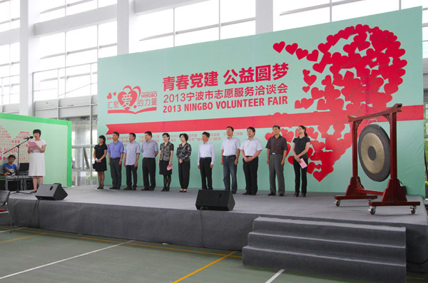 6月13日下午,以“青春党建 公益圆梦”为主题的2013年宁波市志愿服务洽谈会在我校体育馆举行。宁波市委常委、组织部长杨立平,浙江团省委副书记朱斌,宁波市委副秘书长陆志孟,市委组织部副部长、市委两新工委副书记贺威平,我校党委书记孙惠敏等领导出席活动,出席仪式的还有宁波团市委副书记钱雪华、宁波市民政局副局长许义平、慈善总会副秘书长蔡怀书、宁波市工商业联合会副主席钱爱民、宁波日报报业集团编委唐慧卿、宁波广电集团经济娱乐频率总监毛洲英等。开幕式由宁波团市委书记鲍娴萍主持。