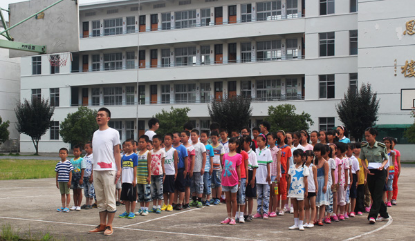 7月6日,实践团在开化县村头镇初级中学操场举行了以“武动人生,做健康学生”为主题的军训活动。