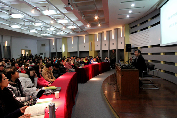 12月20日下午,浙江大学数学系蔡天新教授做客我校,在图书馆二楼报告厅,为我校师生作题为“带着数字和玫瑰旅行”的讲座。校长助理高振强与200余名师生一起跟随蔡教授开始了一次充满神奇与浪漫的玫瑰之旅。
