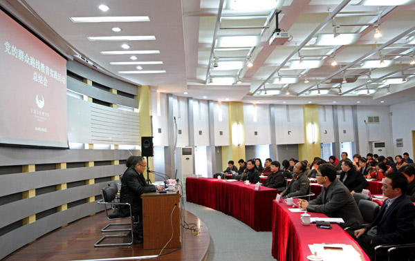 林长兴副书记代表校党政班子总结了我校党的群众路线教育实践活动开展情况。他强调,在市委领导和第十五督导组的具体指导下,我校党的群众路线教育实践活动,以中央提出的“照镜子、正衣冠、洗洗澡、治治病”为总要求,按照市委要求,紧扣“为民务实清廉”主题,明确目标、精心筹划、广泛动员、认真实施,顺利完成了教育实践活动各环节的全部工作,教育实践活动取得了预期成效。他从学习教育贯穿始终、开门纳谏查摆问题、开展批评与自我批评、整改措施责任到位等四方面的具体做法全面回顾了我校教育实践活动的开展情况,并取得了党性修养进一步坚定、工作作风与精神风貌明显改善、联系师生更加紧密、工作执行力得到进一步提升、强化廉洁自律的制度不断完善等五方面的明显成效。他说,搞好教育实践活动,充分准备、深入发动是前提,督导组的悉心指导和帮助是重要力量,掌握政策、把握方向是必然要求,领导带头、以身作则是关键,统筹兼顾、两相促进是有效途径,兑现承诺、取信于民是根本保证。