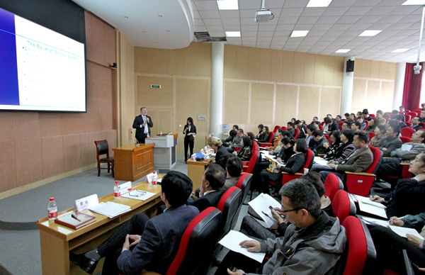 4月2日上午,宁波市教育局国际交流与合作处与我校联合举办了应用科技大学建设国际学术报告会。报告会由霍夫应用技术大学校长Jurgen Lehmann (尤根•莱曼教授)主讲,题目为“德国应用技术大学校长的决策与管理”。我校领导,相关职能部门、分院负责人和老师,以及浙江万里学院、宁波职业技术学院、浙江工商职业技术学院和浙江医药高等专科学校等兄弟院校的相关领导到场聆听了讲座。