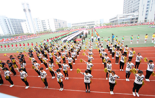 随后举行的大型团体操表演将开幕式气氛推向高潮,800余名女生的精彩表演赢得了阵阵掌声。