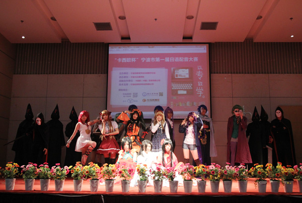 比赛中,参赛的14支代表队选配了《蜡笔小新》、《大奥》、《樱桃小丸子》等日本经典影视作品的片段,现场展示各具特色,充分展现了选手们的日语口语表达能力与演绎水平。在近3个小时的比赛中,选手们为现场师生奉献了一场生动精彩、高潮迭起的日语配音盛宴。最后,宁波大学代表队带来的配音作品《江·公主们的战国》夺得了大赛的特等奖和最高人气奖;我校12级日语1班的两支参赛队也分别获得了二、三等奖。