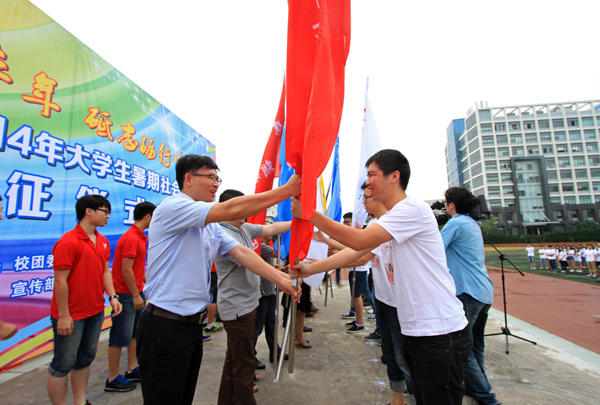 6月18日下午,我校以“万马奔腾改革年,砥志砺行中国梦”为主题的2014年大学生暑期社会实践出征仪式在校本部南区风雨操场举行。校长助理何秋叶出席并讲话,学工部、党委宣传部、教务处、校团委以及各分院党总支负责人参加了仪式。