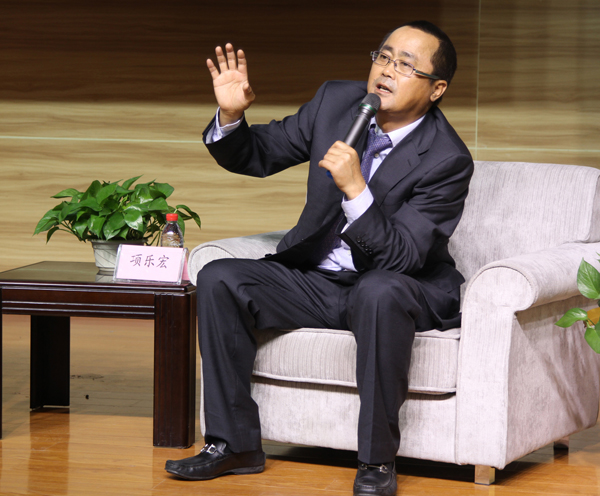 4月28日下午,2015宁波市大学生“创青春”系列活动——创青春·风云甬商进高校在我校正式启动。浙江省围海建设集团股份有限公司总经理王掌权、宁波乐歌视讯科技股份有限公司董事长项乐宏与大学生对话,分享创业历程和感悟。