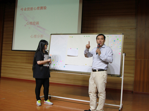 讲座中,刘爱民主要分析了辅导员该如何开展学生心理辅导工作。他认为,针对大学生的辅导要符合他们的生理年龄、心理年龄等心理发展状态,善用家庭关系与环境因素,利用学生潜在能量诱导其成熟,发现问题时对病理性质适当矫正、利用社会资源及时转介。接着,他介绍了沙盘游戏、心理绘画等被广泛应用于学习心理教育和心理治疗的投射测验技术,详细讲解了辅导员心理工作和学生管理工作中团体心理绘画技术的运用,帮助辅导员了解学生个性、优化团队组建。刘爱民还通过折纸游戏、心理量表专业测试、心理绘画分析、减压实用小方法等活动,带领老师们挖掘自己的内心世界,关注教师心灵成长。