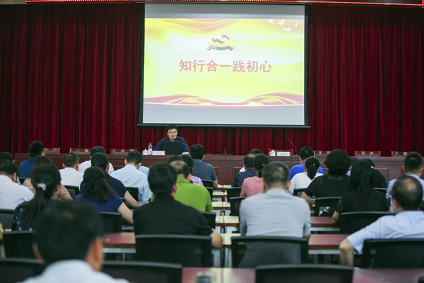 郭美星在报告中说,“不忘初心、牢记使命”是党的十九大大会主题的重要内容。中国共产党人的初心和使命,就是为中国人民谋幸福,为中华民族谋复兴。随后,他围绕“初心和使命”,从王阳明“知行合一”的观点角度,通过具体生动的历史典故、中外案例、详实数据阐述了“何为知行合一”,“怎样践行初心”,以及“如何深入学习贯彻习近平新时代中国特色社会主义思想”等问题。他表示,要坚定文化自信,学会从中华优秀传统文化中汲取养分和智慧,不断提升党性修养和修身处事的能力。