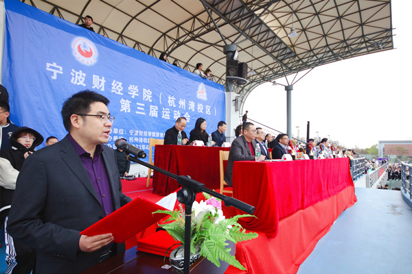 伴随着激昂的运动员进行曲,国旗、校旗、会徽护卫队,彩旗队、鲜花队、运动员方阵、裁判员方阵、志愿者方阵迈着矫健整齐的步伐,依次步入会场。各二级学院方阵进行了入场式表演,创意迭出的演出,展现了宁财院学子的蓬勃朝气。庄严的升旗仪式后,吴勇致开幕词,他向精心筹办运动会的全体工作人员、裁判员、参赛运动员和志愿者表示感谢和问候,勉励师生们秉承和发扬“自信、专注”的校训和“百折不挠、超越自我、不断追求崇高目标”的学校精神,奋力拼搏,争创一流的运动佳绩,将本届运动会办成安全、有序、高效而又令人难忘的体育盛会。在运动员、裁判员代表宣誓后,周波宣布我校杭州湾校区第三届运动会开幕,并为本届运动会授旗。之后,700余名同学带来五组大型团体操表演,赢得在场观众阵阵掌声与喝彩。