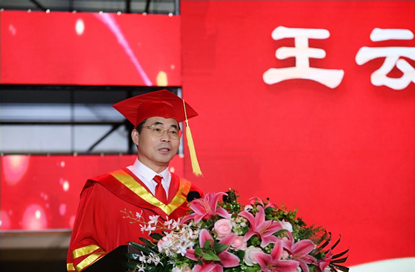 在热烈的掌声中,王云儿为全体毕业生上了大学里的“最后一堂课”。他在讲话中说,同学们四年前从祖国各地汇聚到宁财,在这座富有创新活力的美丽校园里涵养学识,勤学奋进,取得累累硕果。今天,大家带着收获的知识、能力与友情,带着一生一世的宁财印记,像鹰一样向着更加辽阔精彩的天空展翅高飞。他强调,鹰的形象一直是学校的文化图腾。二十年来,在“百折不挠、超越自我、不断追求崇高目标”精神的激励下,学校各项事业实现跨越式发展。“鹰的精神”已经深深融入了每一位师生的血液中,成为宁财校园文化的核心力量,激励着一批又一批的青年学子走向成功,这种精神同样会成为毕业生走向社会、快步前进的动力。他希望全体毕业生明确目标,不断做强自己,让飞翔的翅膀更加有力,这也是强者的精神品质。讲话最后,王云儿表示,母校是“鹰起飞的地方”,祝愿同学们像雄鹰一样,历经蜕变和重生,最终脱胎换骨,向着心中的崇高目标,迎风展翅、昂首向前,勇敢搏击长空。王校长的讲话饱含深情、富有哲理、寓意深远。毕业生们认真聆听,将校长的嘱咐铭记于心。