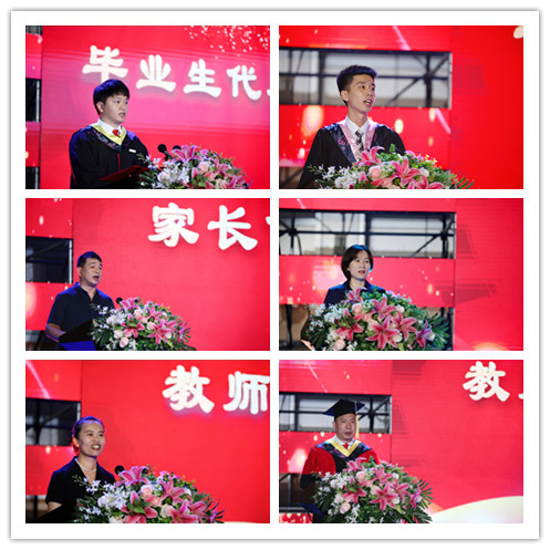 典礼上,毕业生代表17软工2班姚杰愉、17视传1班姚杰,学生家长代表17电商1班徐智超同学家长徐云杰、17汉教2班郑佳宁同学家长陈卫菊,教师代表财富管理学院应晓春、数字技术与工程学院彭绪山等先后作了发言,为毕业生们送上真挚的毕业祝福,勉励大家怀揣梦想,在未来学习、工作和生活中努力奋斗,为国家和社会多做贡献。