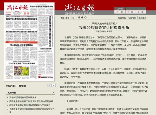 我校00后宣讲团的工作事迹被浙江日报等媒体宣传报道