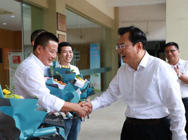 在与“国家级一流课程”负责人赵迎军、“省首届教师教学创新大赛”获奖者邵将、“2021年国家社科基金”项目主持人李书彦、唐辉军等老师的交流过程中,裘东耀询问了老师们的工作学习情况,并依次为他们送上了鲜花。他希望全体教师要以习近平新时代中国特色社会主义思想为指导,认真学习领会习近平总书记给全国高校黄大年式教师团队代表的重要回信精神,进一步提升教育教学质量,激发青年创新潜能与创业活力,提高学生“创业率”“留甬率”,为学校、为宁波、为社会造就一大批创新创业人才。