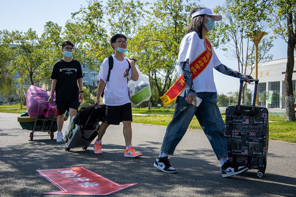 报到期间,学校在宁波市、慈溪市、余姚市、杭州湾新区、象山县的主要交通站点安排了接站和交通导引,提供免费接驳班车,迎候新生及家长到来。杭州湾校区、象山校区门岗开辟了专用通道,新生挥别家长之后,在工作人员的带领下,依次查验通信行程卡和健康码、测量体温、领取校园一卡通、办理寝室入住。依托数字化技术手段,学生数据采集、学费缴纳、公寓分配工作均已提前完成,新生仅需完成身份证及人像识别对比,即刻报到成功。