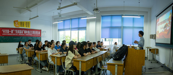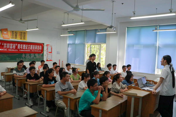 9月23日,由宁波市党史学习教育领导小组办公室、市教育局联合主办的宁波市高校“开学第一课”“共同富裕”青年理论主题宣讲活动在我校杭州湾校区举行。