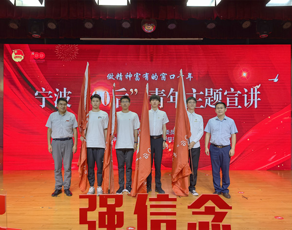 在宁波高校“00后”青年宣讲小分队授旗环节中,张军、吴勇为各支高校宣讲团队授予了旗帜,现场响起了热烈掌声。活动结束后,各支宣讲小分队将陆续分赴海曙区、江北区、鄞州区、北仑区开展基层宣讲,将青年好声音带给千家万户。