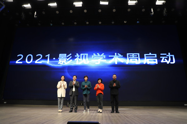 敬一丹(中)、校长王云儿(左二)等共同为我校2021影视学术周活动启幕
