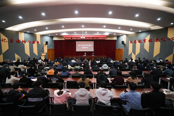 市教育局二级巡视员张力鸣,市委组织部组织人事处处长杨勇、调研室副主任朱晨昊参加相关活动。学校校长王云儿等全体校领导,全体中层干部,马克思主义学院教师代表、各二级学院师生党员代表、青年宣讲团成员代表等参加报告会。