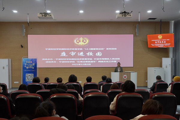 12月2日,宁波市海曙区人民法院与我校国际经济贸易学院以宁波中院“共享法庭”四明“云法庭”为载体,为师生们带来一起真实的“帮助信息网络犯罪活动罪”案件庭审实录,2600余名大学生通过钉钉在线直播,同步参与了此次活动。近年来,我校以大数据等新兴技术为依托,抓住普法契机,强化日常教学,探索建立“共享法庭+共享课堂”实践教学新模式,不断将相关法律课程做成一道有趣有料有味的知识佳肴。